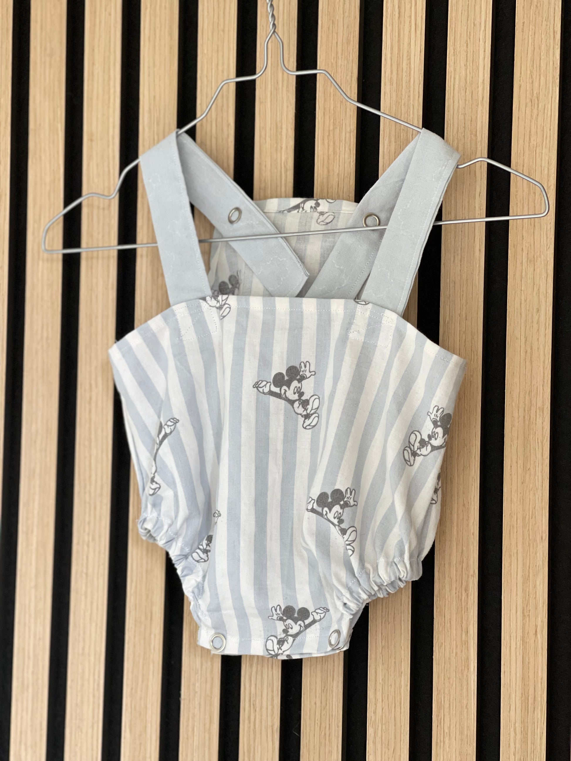 Sød dragt med Mickey mouse (der er tilføjet ekstra knapper på stropperne så de kan justeres efter barnet).