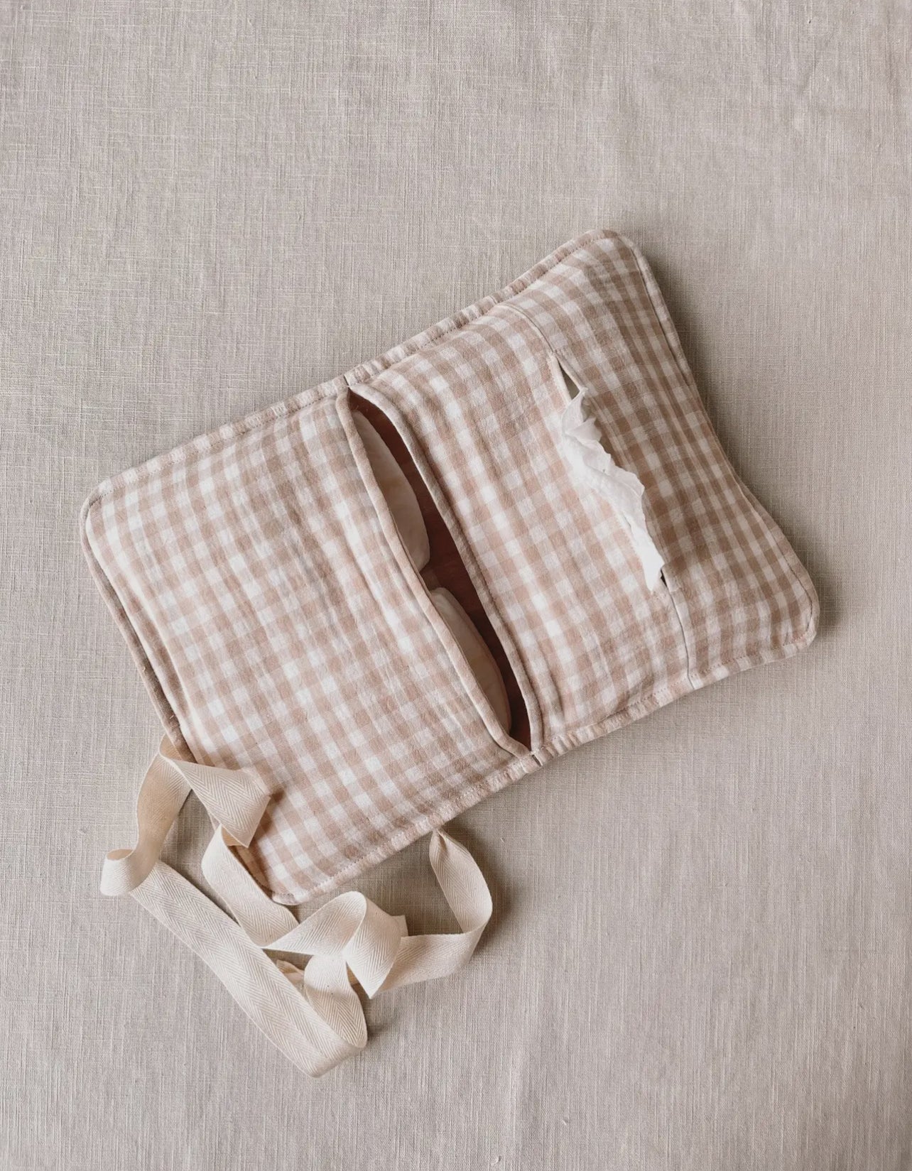 Bletasken er perfekt hvis du ikke orker at slæbe hele pusletasken med dig. Der er plads til bleer og vådservietter i.