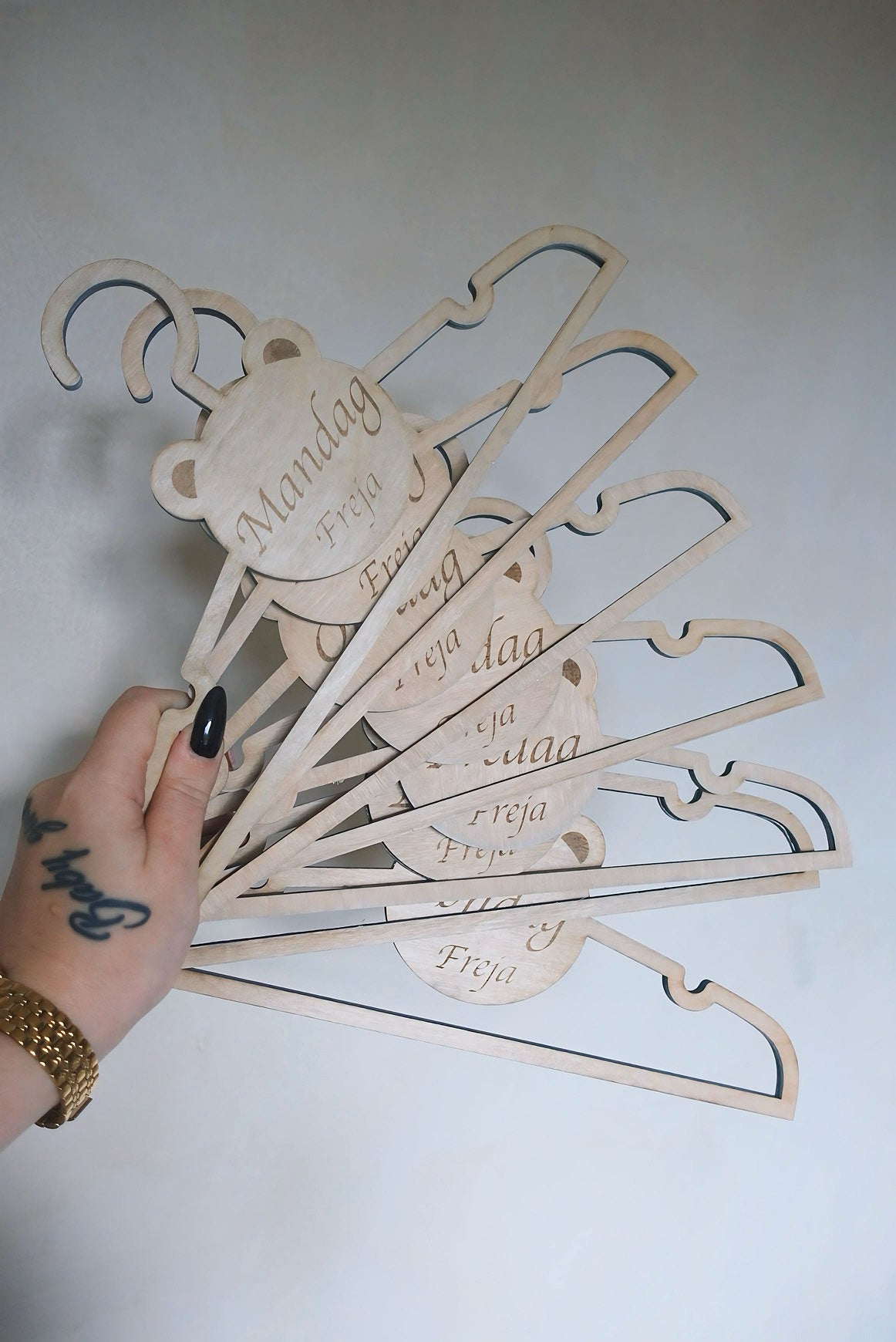Bøjlerne er indgraveret med alle ugens dage, hvilket giver forældre og børn mulighed for at planlægge ugens outfit på en sjov måde. Hver dag kan tilknyttes et specifikt tøj, hvilket gør det lettere for børn at vælge, hvad de skal have på.