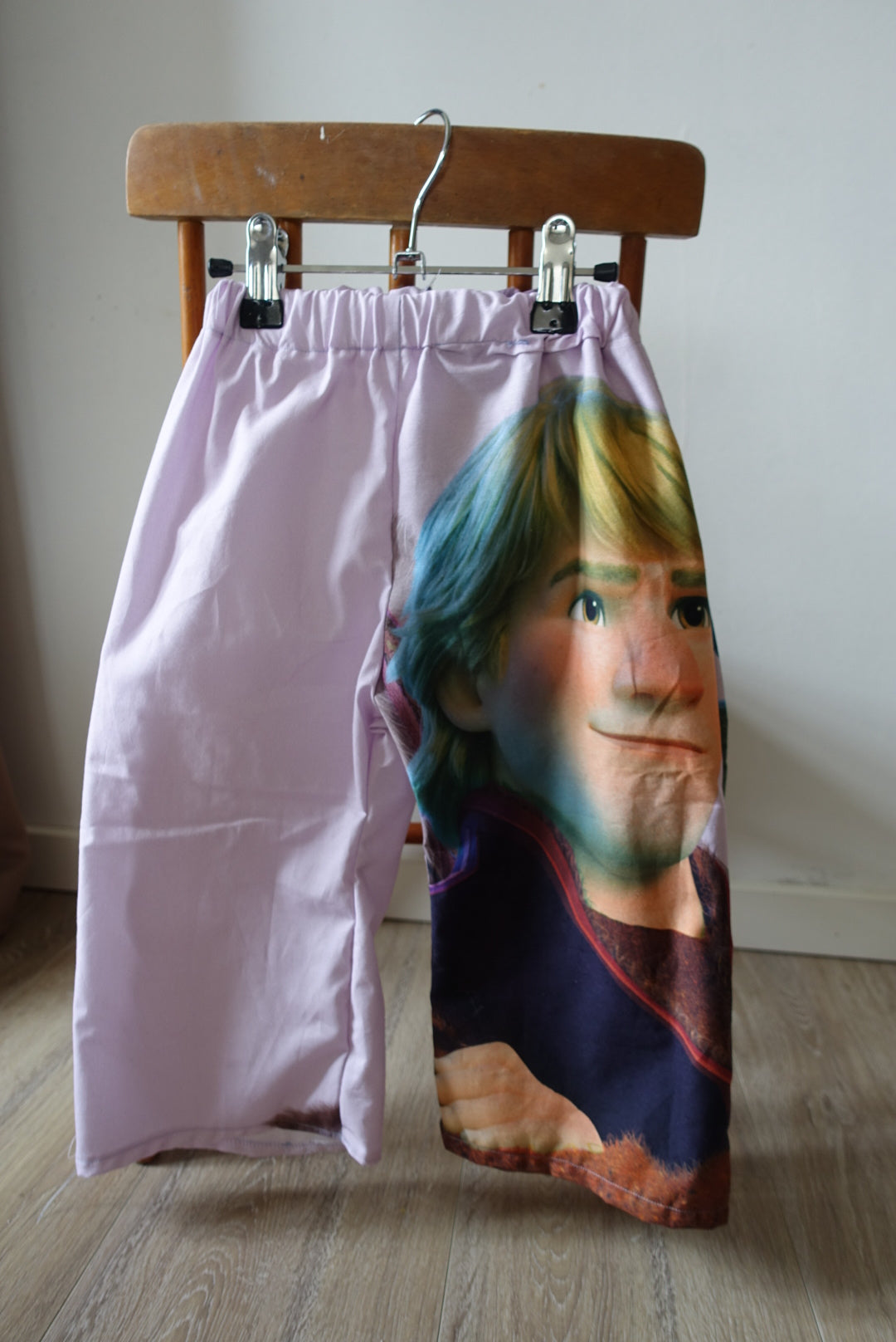 bukserne dækker over to størrelser, da de er lavet til man kan opsmøge benene. På den måde kan de bruges i længere tid.