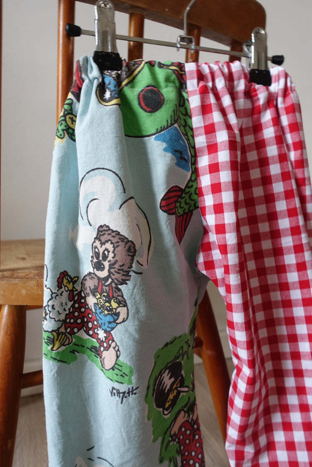 bukserne dækker over to størrelser, da de er lavet til man kan opsmøge benene. På den måde kan de bruges i længere tid.