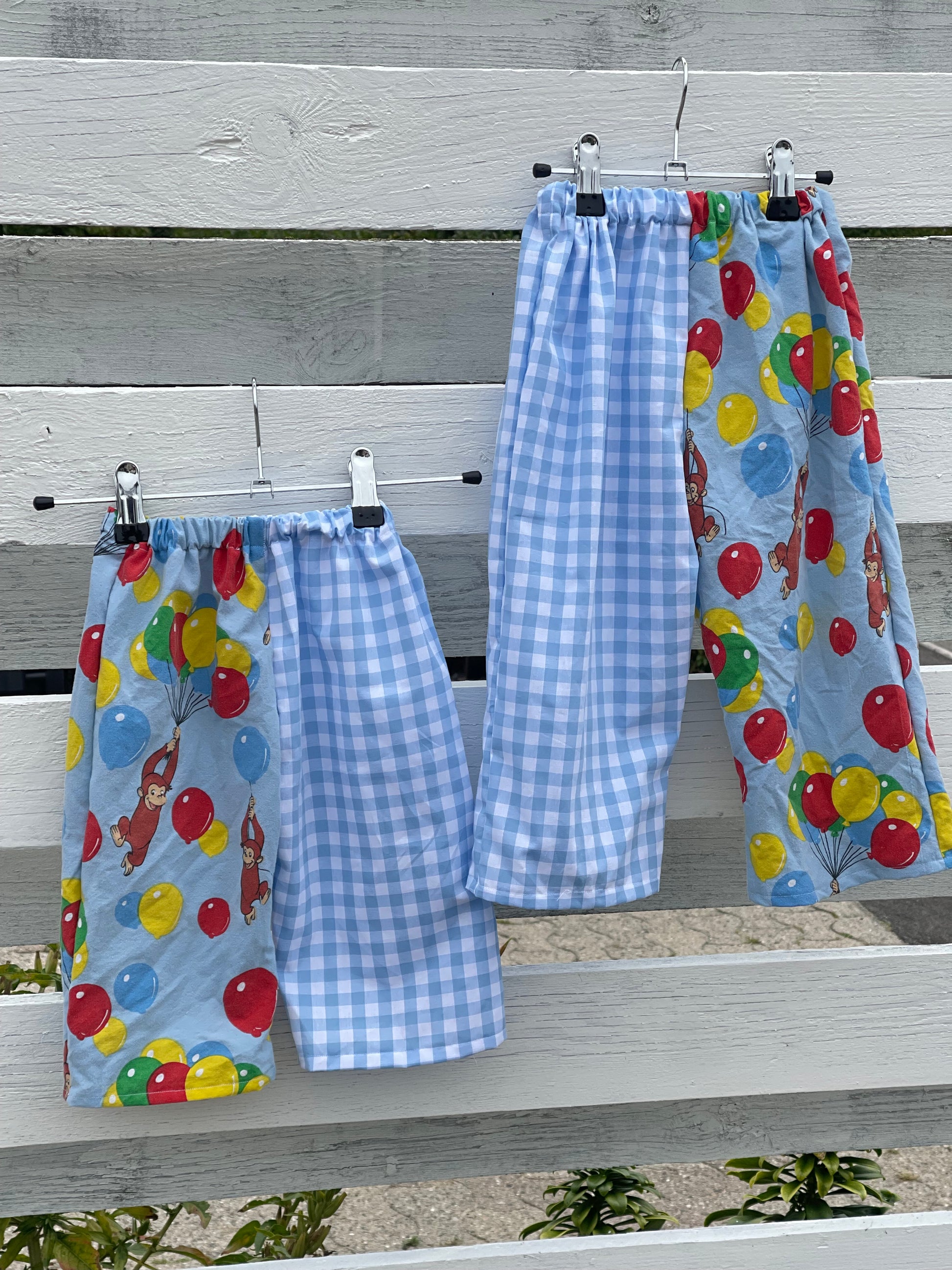 bukserne dækker over to størrelser, da de er lavet til man kan opsmøge benene. På den måde kan de bruges i længere tid.