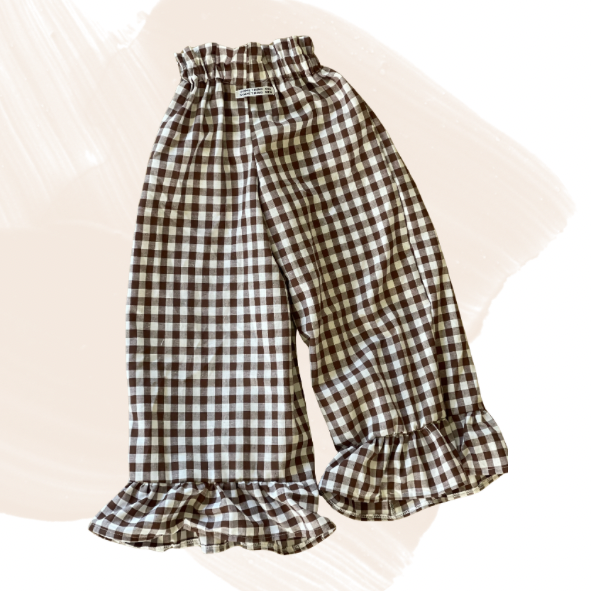 Millie bukserne er de klassiske “kassebukser” med et feminint twist. De brede ben giver god bevægelsesfrihed, mens de fine flæser i buksekanterne tilføjer et legende og sødt udtryk.