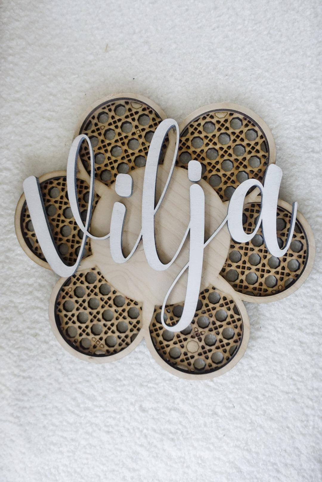 Tilføj et unikt og legende element til dit barns værelse med vores smukke navneskilt formet som en blomst. Dette skilt har et charmerende fransk flet look, der giver en elegant og naturlig æstetik.