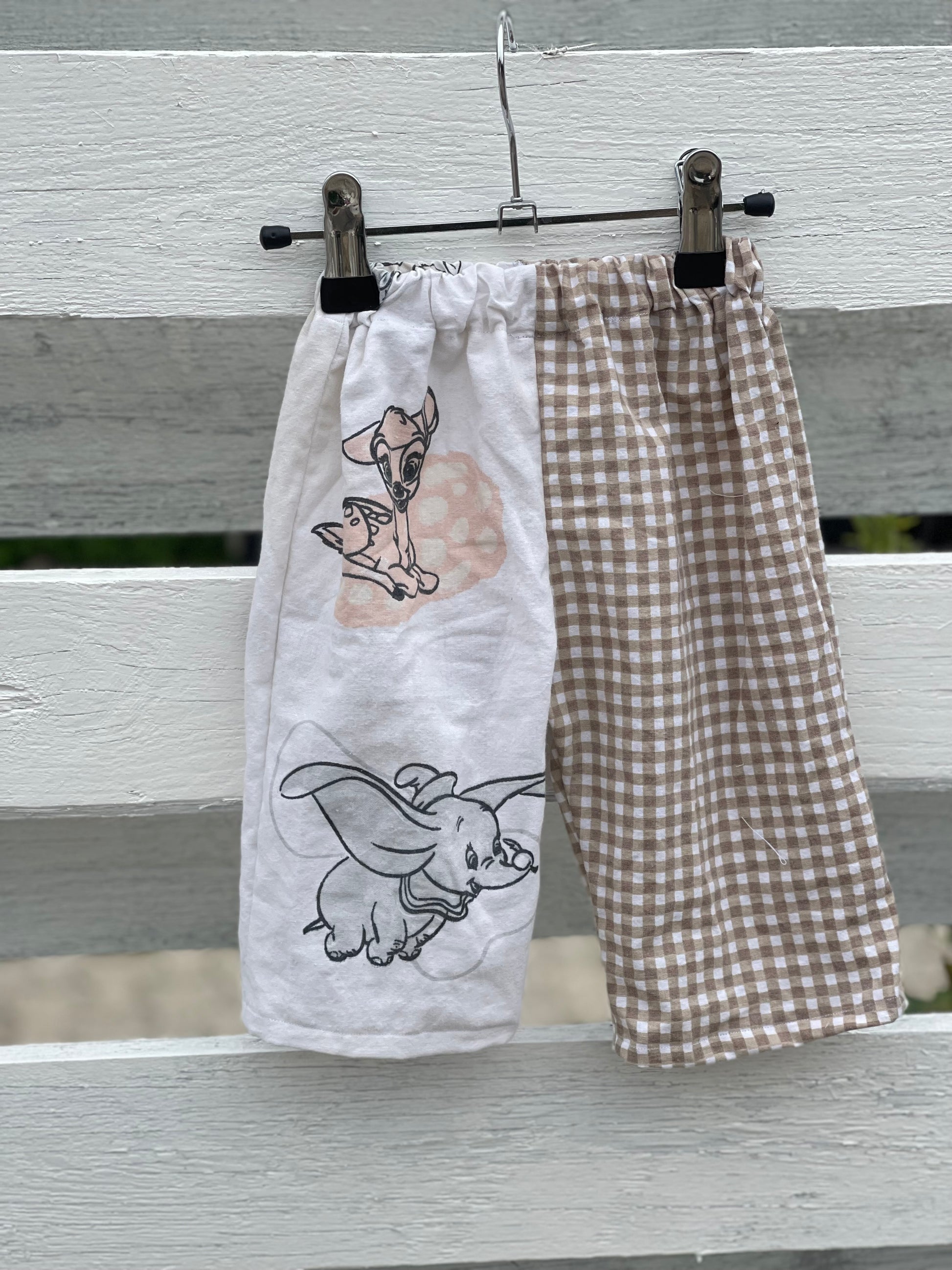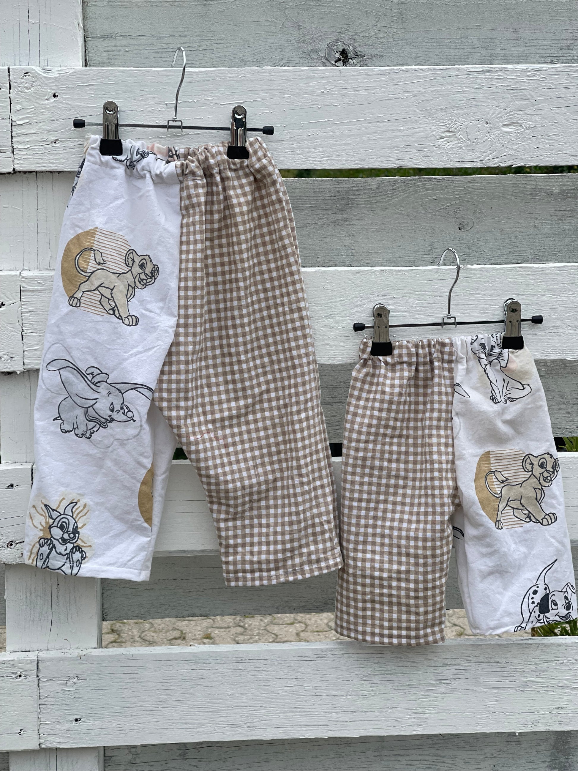 bukserne dækker over to størrelser, da de er lavet til man kan opsmøge benene. På den måde kan de bruges i længere tid.