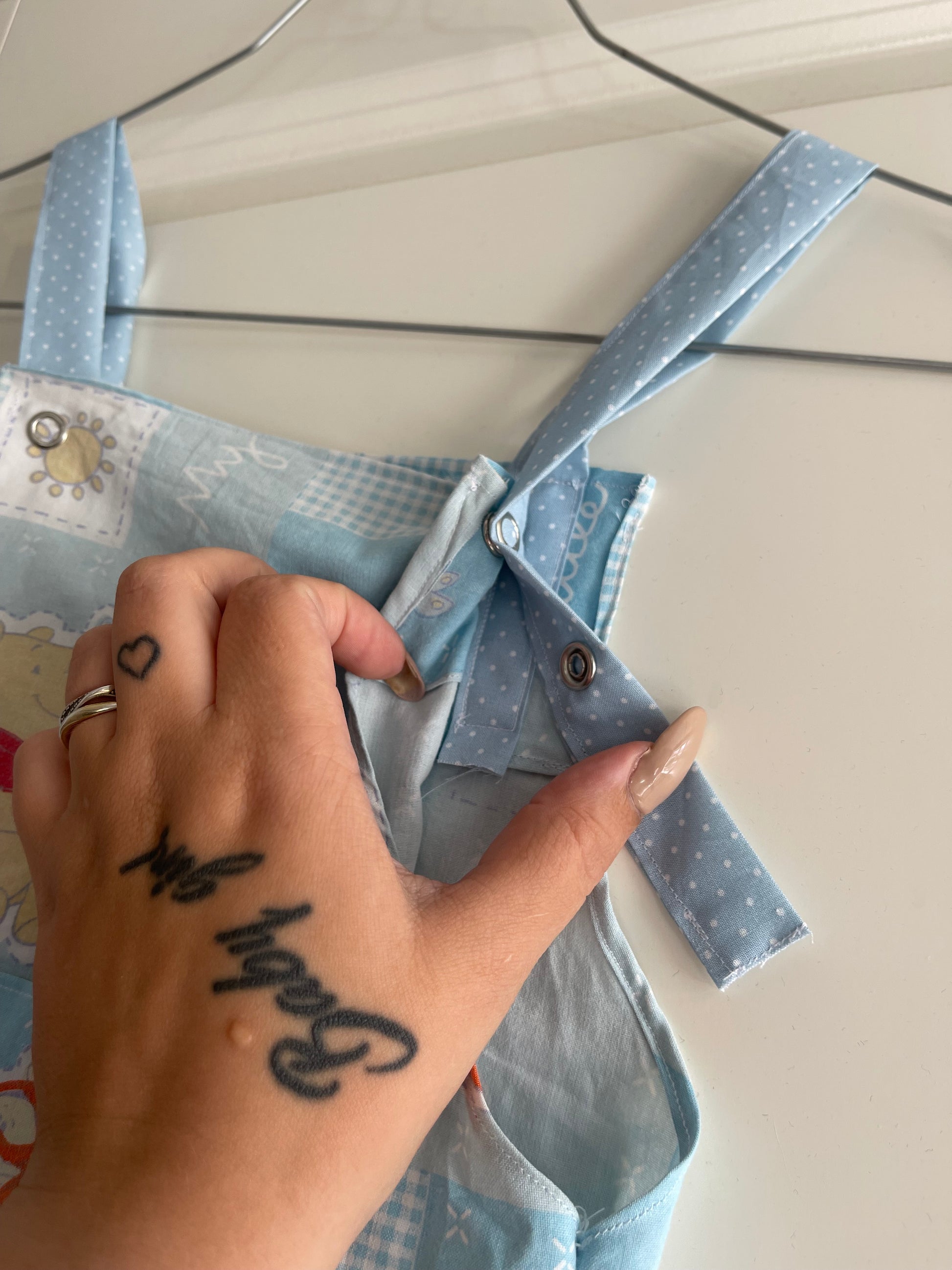 Peter plys sommerdragt - kan justeres i stropperne så de kan bruges i længere tid. Syet ud af genbrugs tekstil