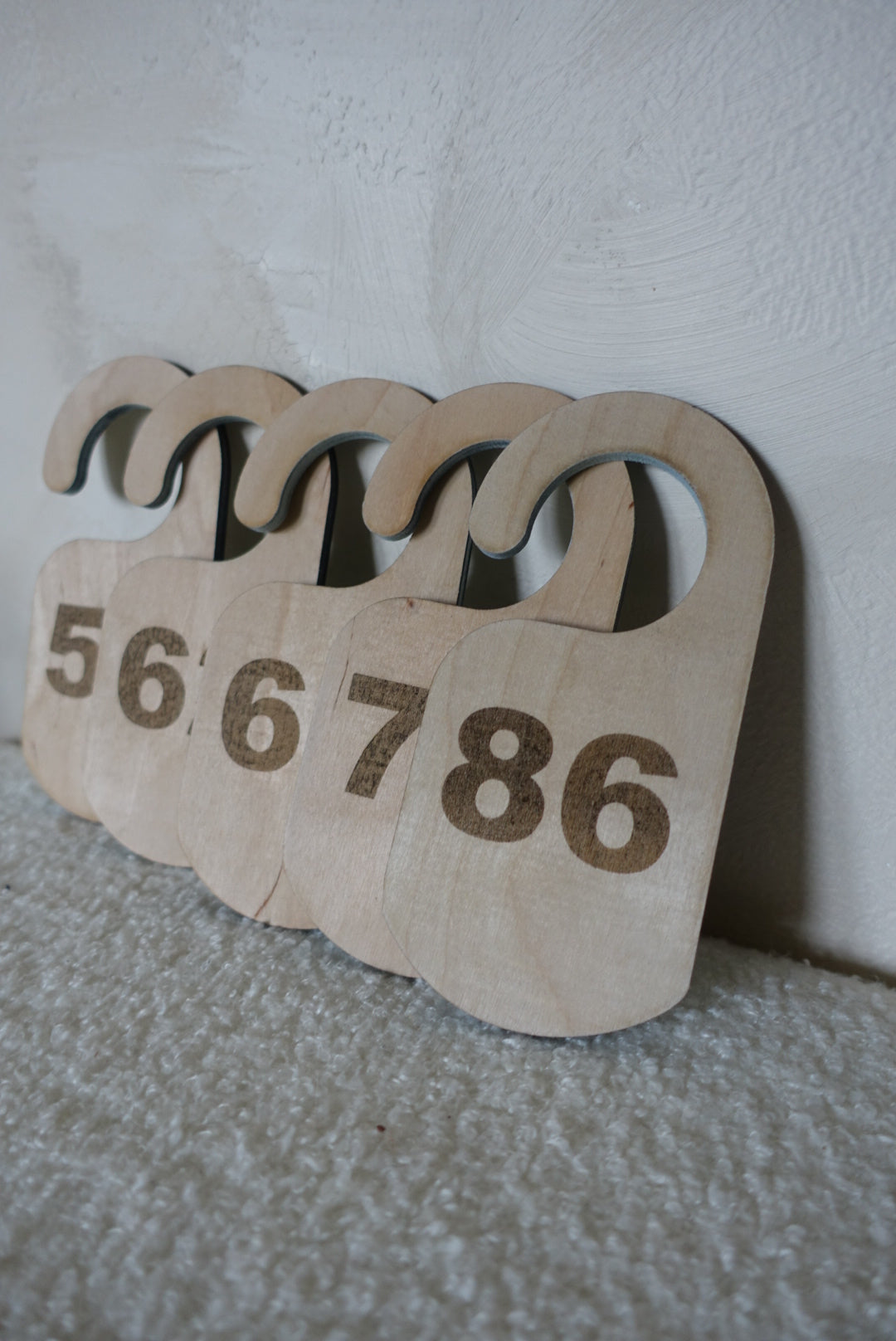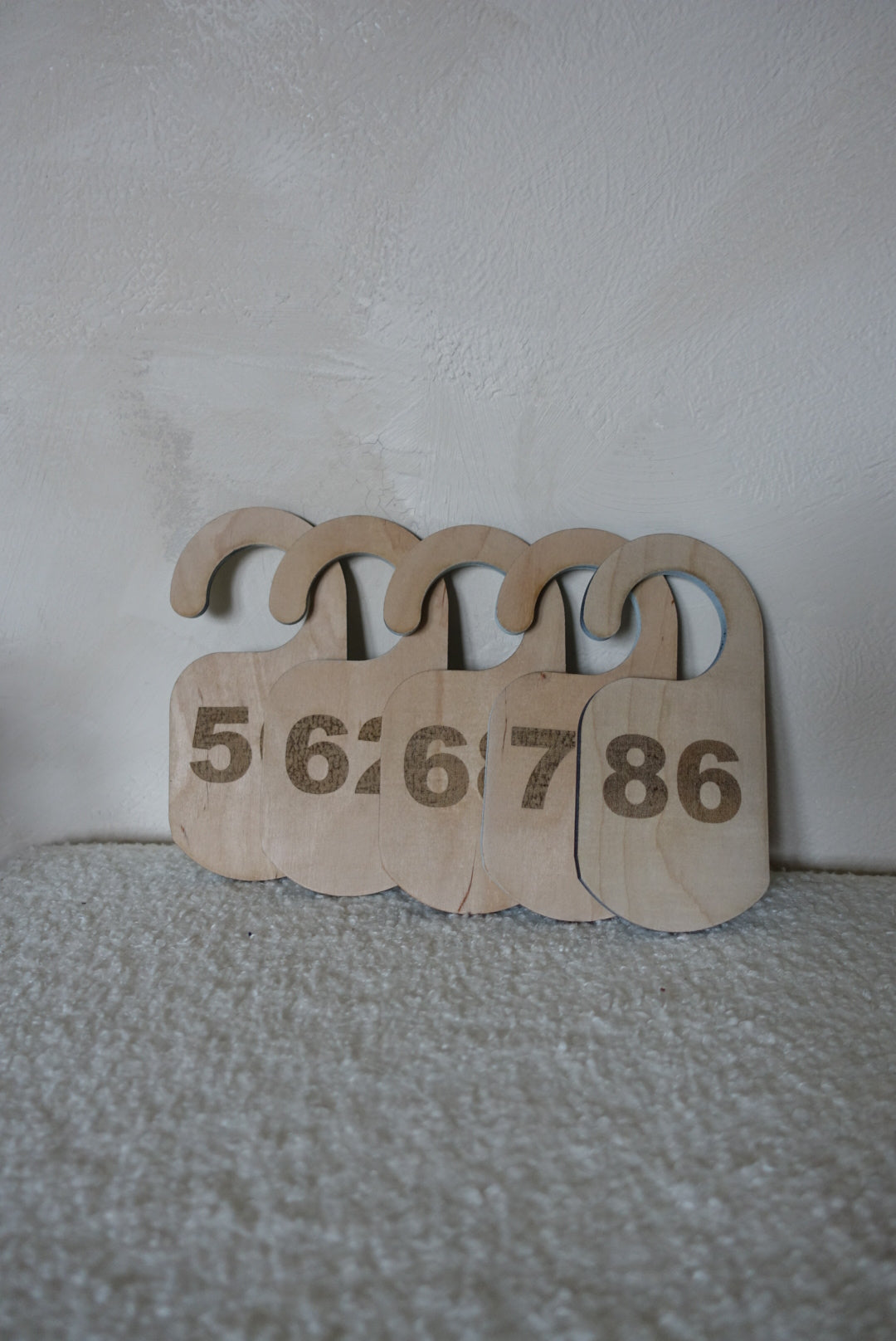 Gør tøjsorteringen til en leg med vores praktiske størrelsesskilt til børnetøj! Disse skilte er fremstillet af 6 mm krydsfiner træ, hvilket giver en holdbar og stilren løsning til opbevaring af dit barns tøj. Skiltene er lette at anvende og kan placeres på bøjler eller bøjlestangen for at holde styr på størrelserne fra nyfødt til større børn.